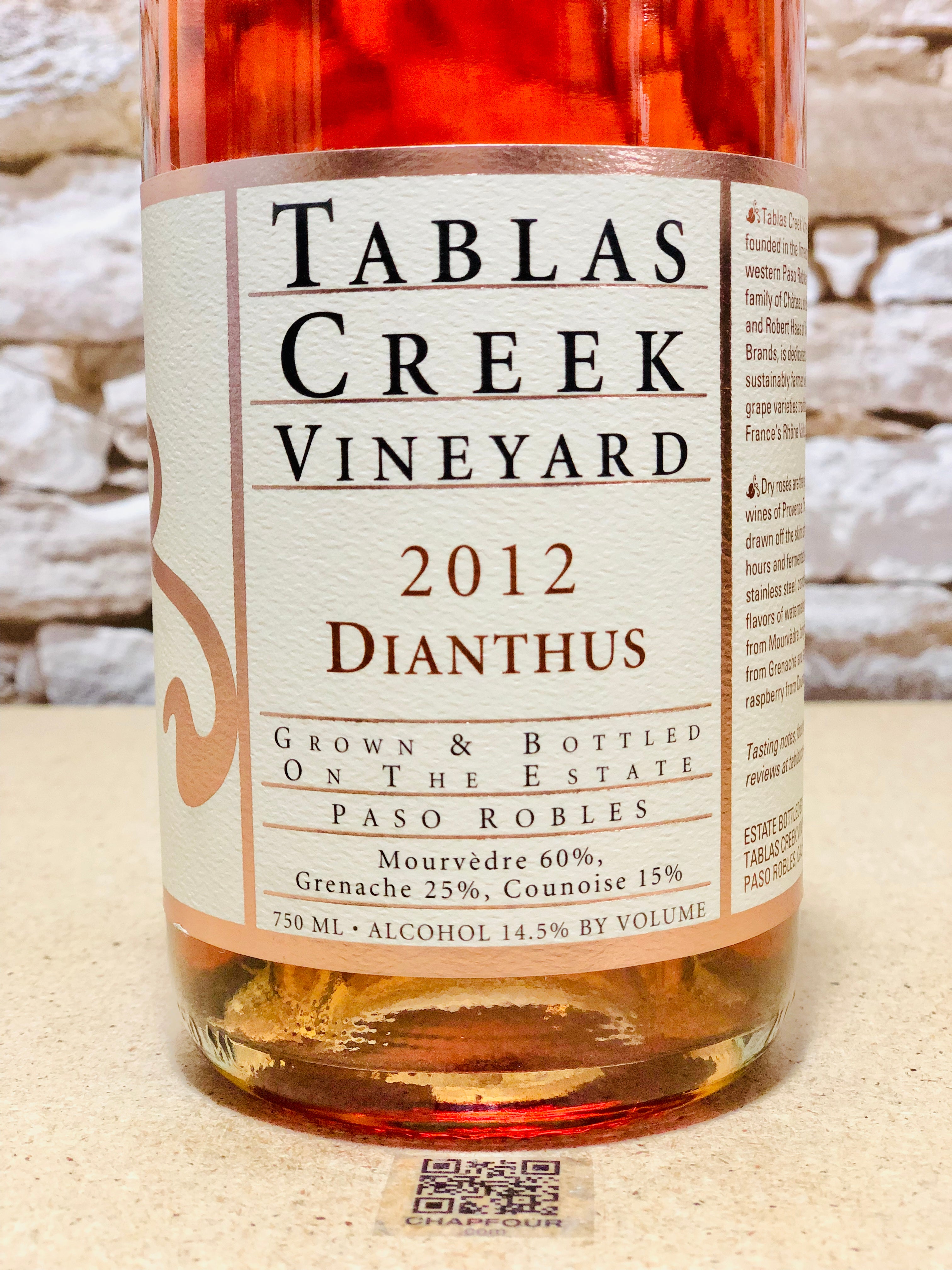 More rich and substantial, with a Tavel level of richness and depth, the 2012 Rose Dianthus (60% Mourvedre, 25% Grenache and 15% Counoise) delivers lush cherry, strawberry and wild herbs like aromas and flavors as well as a medium-bodied, full-flavored palate that stays beautifully fresh and focused. It's a superb Rose from California and while it will drink nicely for 2-3 years, it won't get beyond this summer at my house.