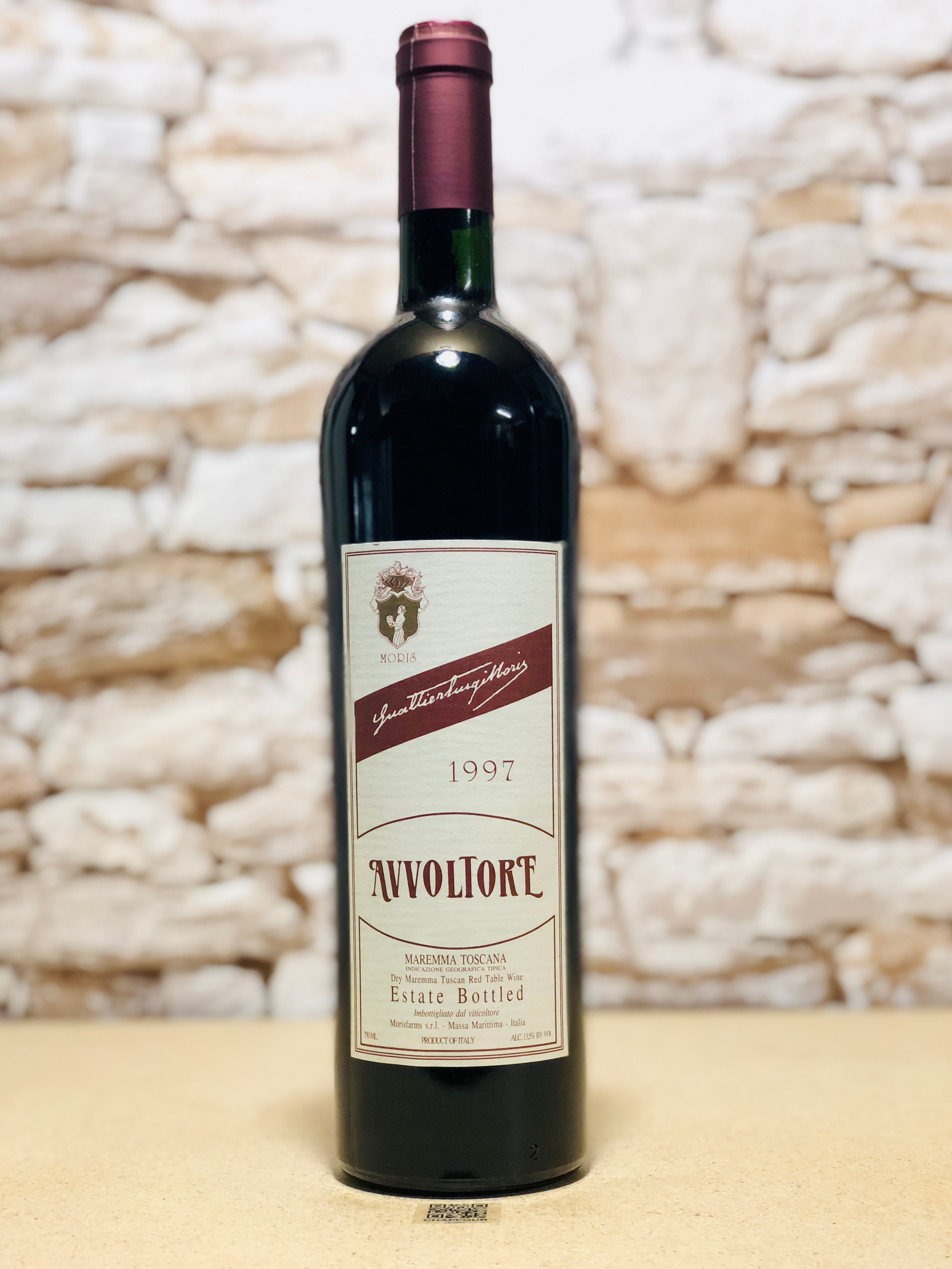 The "Avvoltore" from Moris Farms is a flagship Super Tuscan wine that blends Sangiovese with Cabernet Sauvignon and Syrah, representing the best of the Maremma region on the Tuscan coast. The 1997 vintage comes from a warm, ripe year, showcasing the full potential of the blend and its capacity for aging. Moris Farms is known for crafting bold, structured wines, and the Avvoltore is a testament to their winemaking prowess, combining the elegance of Sangiovese with the depth and complexity of Bordeaux varietals.